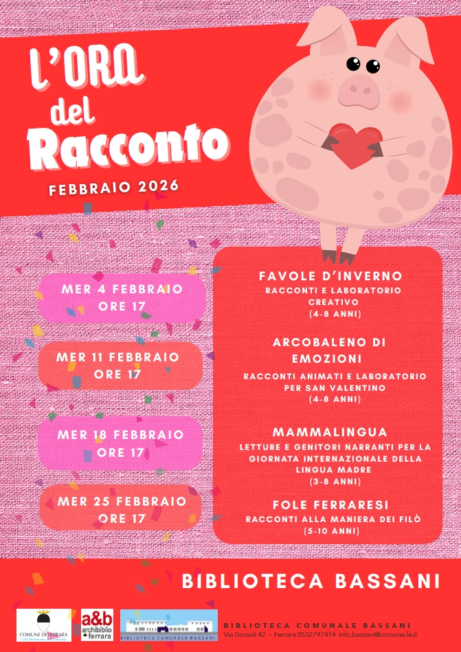 BIBLIOTECA BASSANI - Mercoledì 4 febbraio 2026 alle 17:00 per bambini dai 4 agli 8 anni in via Grosoli 42 (Barco, Ferrara). Aperte le iscrizioni