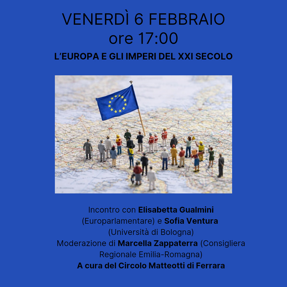 Proporrà un approfondimento sul ruolo dell'Unione europea nello scenario geopolitico del XXI secolo l'incontro con Elisabetta Gualmini (europarlamentare) e Sofia Ventura (Università di Bologna) in programma venerdì 6 febbraio 2026 alle 17:00 nella sala Agnelli della biblioteca comunale Ariostea (via delle Scienze 17, Ferrara).