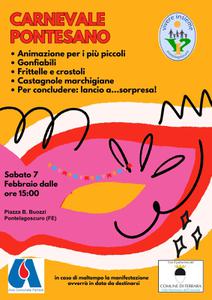 E' in programma per sabato 7 febbraio 2026 la festa di Carnevale organizzata a Pontelagoscuro dal Comitato Vivere Insieme. L'appuntamento con il 'Carnevale Pontesano' è dalle 15:00 in piazza Bruno Buozzi dove ci saranno gonfiabili e animazione per i più piccoli e dolci per tutti.