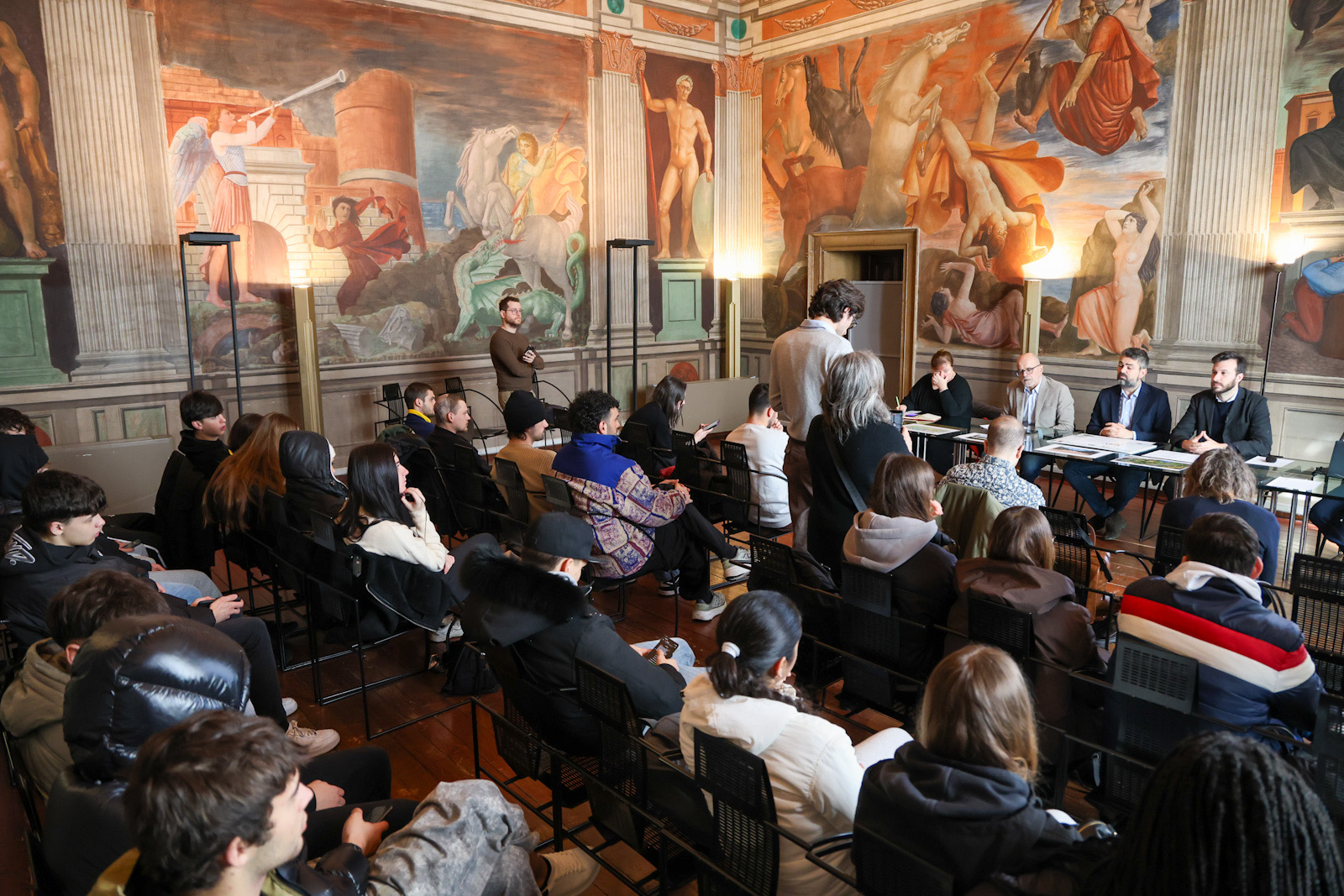 All'incontro con i giornalisti sono intervenuti il Vicesindaco con delega a Opere pubbliche e Rigenerazione urbana di Ferrara, l'Assessore allo Sport, il dirigente del Servizio Pianificazione Territoriale del Comune di Ferrara Fabrizio Magnani, la dirigente del Servizio Sport del Comune di Ferrara Cinzia Graps e il presidente dell'associazione Momama Skate asd di Ferrara Tito Consiglieri.