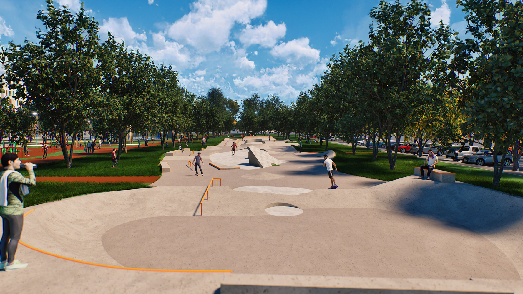 Aspetti tecnici. La pista da skate sarà interamente realizzata in cemento gettato in opera al fine di garantire massima durabilità, manutenzione minima e qualità delle superfici.