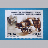 Didascalia immagine: Esodo giuliano dalmata. Associazione Nazionale Venezia Giulia e Dalmazia - Fotografie storiche dell'esodo italiano dalla Dalmazia e dall'Istria. Francobolli emessi dalla Repubblica italiana 2005