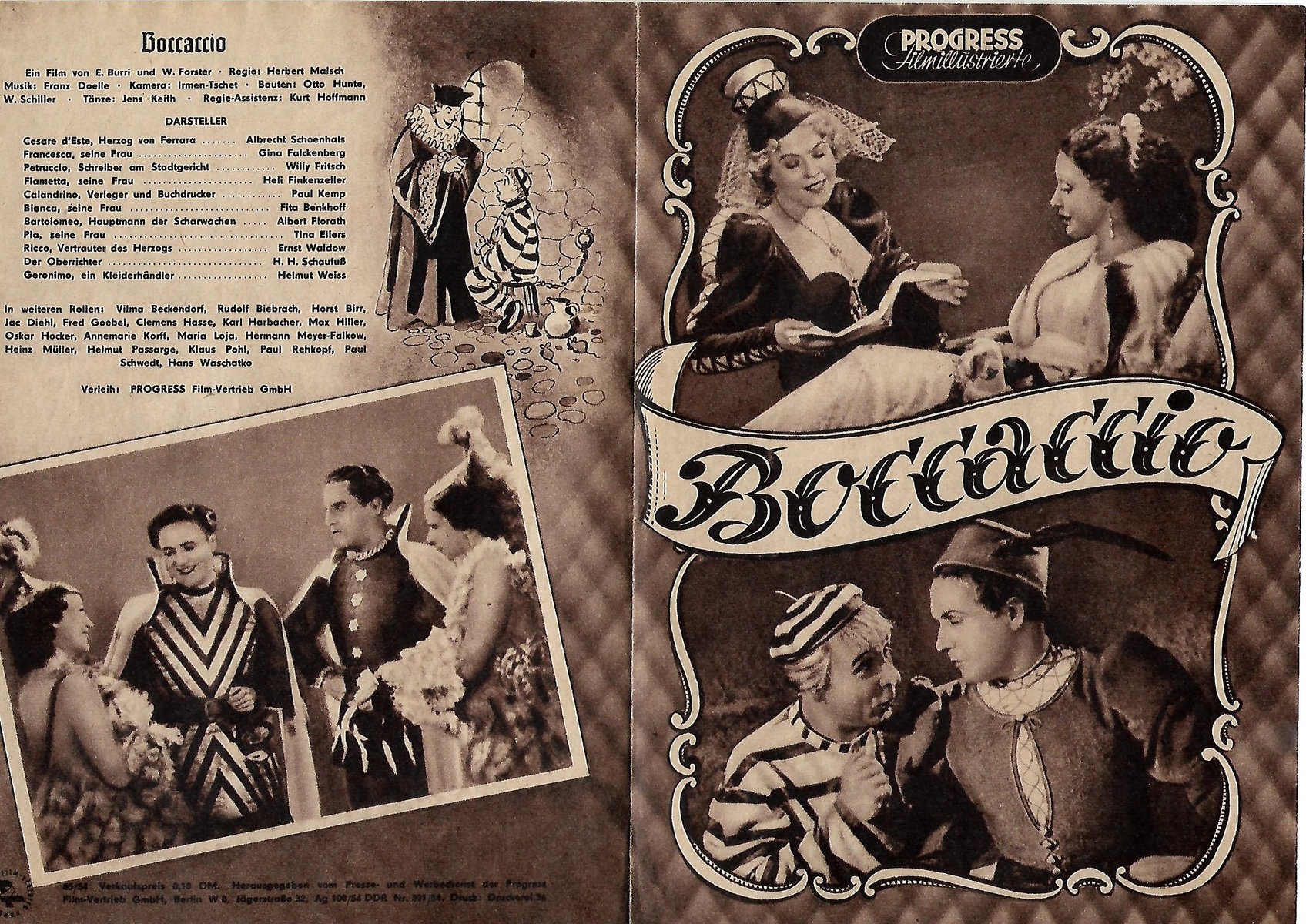 Il film "BOCCACCIO", del 1936, di Herbert Maisch era assolutamente sconosciuto e mai presentato in Italia fino alla nostra ricerca del 2025. Il film fu realizzato in Germania negli studi di Berlino, dove fu ambientato in modo molto libero e fantasioso il palazzo degli Estensi di Ferrara, negli stessi studi cinematografici dove era stato realizzato il famoso Metropolis.