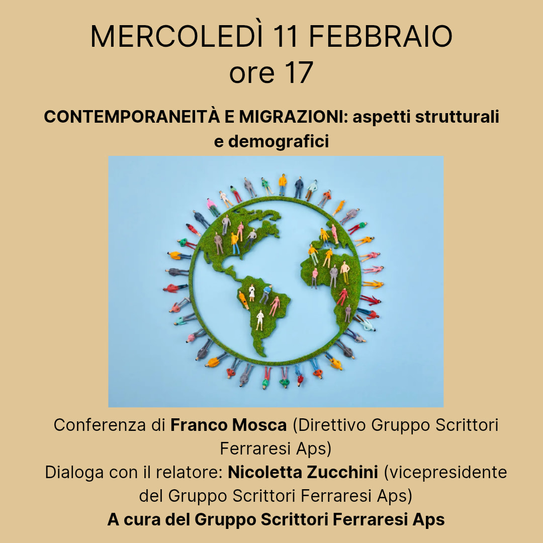 Proporrà un quadro dell'attuale situazione demografica in Italia la conferenza di Franco Mosca (Direttivo Gruppo Scrittori Ferraresi Aps) in programma mercoledì 11 febbraio 2026 alle 17:00, nella sala Agnelli della biblioteca comunale Ariostea (via delle Scienze 17, Ferrara).