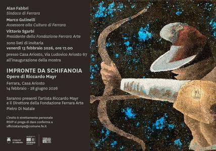 Venerdì 13 febbraio 2026 alle 17:00, nello spazio espositivo di Casa Ariosto (via Ludovico Ariosto 67) a Ferrara si terrà l'inaugurazione - riservata a giornalisti e invitati - della mostra "Impronte da Schifanoia. Opere di Riccardo Mayr", che sarà aperta al pubblico dal 14 febbraio al 28 giugno 2026.