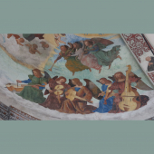 Immagine: Geminiano Benzoni o Benedetto Coda (attribuito), Concerto d'angeli per l'Assunzione della Vergine, 1515 ca., Ferrara, Chiesa di Santa Maria della Consolazione (© Foto Camilla Cavicchi)