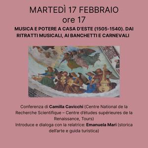 Proporrà un excursus su "Musica e potere a Casa d'Este (1505-1540). Dai ritratti musicali, ai banchetti e carnevali" la conferenza di Camilla Cavicchi (Centre National de la Recherche Scientifique - Centre d'études supérieures de la Renaissance, Tours) in programma martedì 17 febbraio 2026 alle 17:00 nella sala Agnelli della biblioteca comunale Ariostea (via Scienze 17, Ferrara).