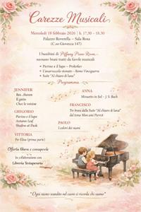 Mercoledì 18 febbraio 2026 dalle 17:30 alle 18:30 a Palazzo Roverella, Sala Rosa (C.so Giovecca 147 - FE) i bambini di Piffany Piano Room accompagneranno i presenti in un pomeriggio di favole musicali tra Pierino e il lupo, melodie "Al chiaro di luna" e tante piccole emozioni al pianoforte.