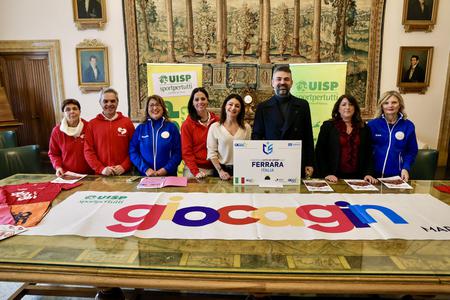 Domenica 22 febbraio 2026 il Palasport di Ferrara si trasformerà in un grande palcoscenico di sport, inclusione e solidarietà. Torna Giocagin, la storica manifestazione nazionale firmata Uisp, nata alla fine degli anni '80 con un'intuizione chiara e rivoluzionaria: affermare il diritto al gioco come diritto universale. L'organizzazione è a cura di Uisp comitato Ferrara, patrocinato dal Comune di Ferrara e al supporto di partner, tra cui La Cassa di Ravenna, La Sapienza ristorante, Enjoy Derma e Studio Associato Guerzoni Mariotti. L'edizione nazionale 2026 coinvolgerà 42 città italiane, confermando Giocagin come uno degli appuntamenti più rappresentativi e identitari di Uisp. A Ferrara, assume un significato speciale e simbolico, presentandosi con il titolo 'Giocagin in light'. La luce diventa metafora di consapevolezza, crescita, responsabilità e solidarietà. I dettagli sono stati presentati stamani nella residenza municipale alla presenza dell'assessore allo sport Francesco Carità, la presidente Uisp comitato di Ferrara, Eleonora Banzi e la responsabile dell'evento Maddalena Mariotti.