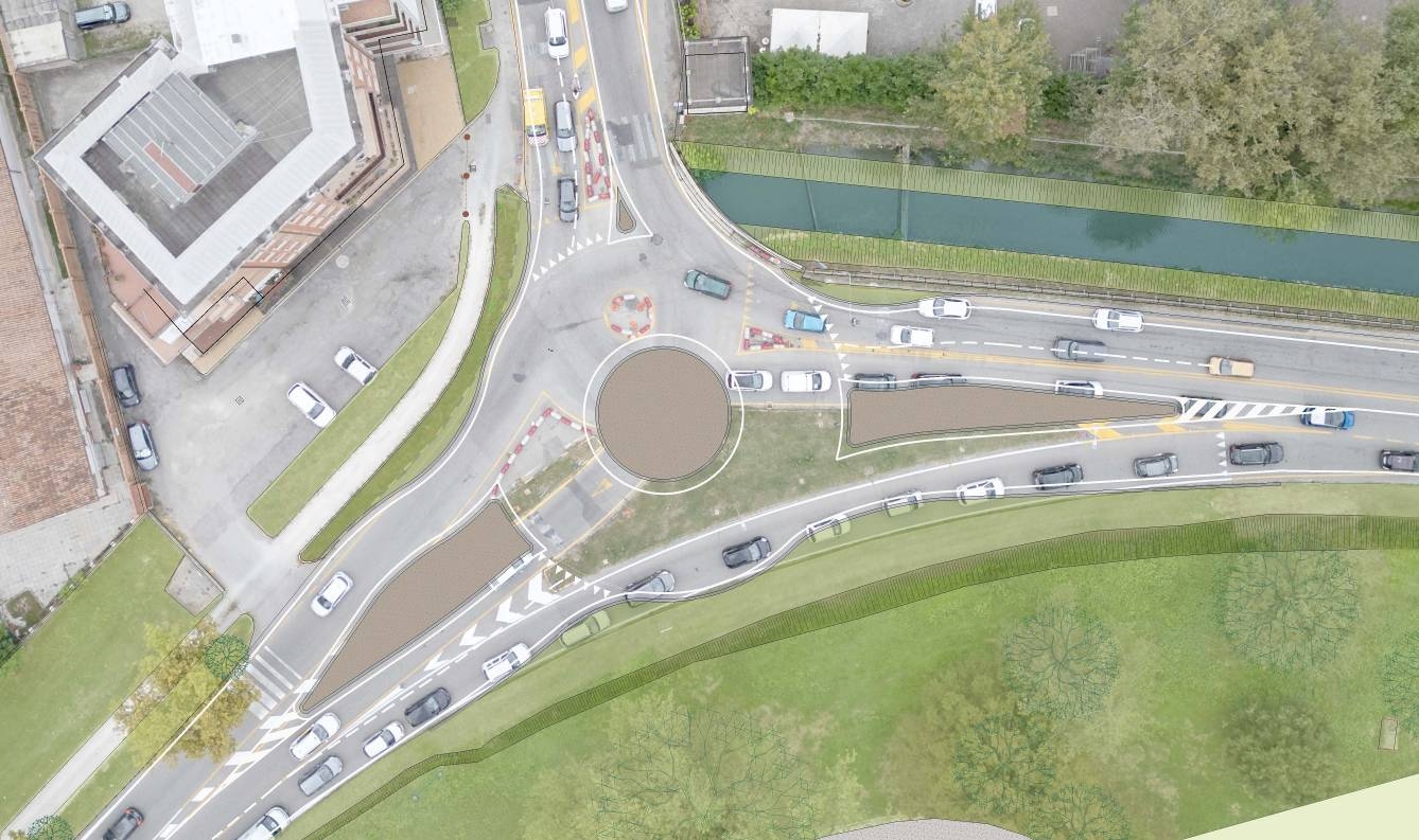 Il progetto della nuova rotatoria è stato sviluppato dopo un periodo di sperimentazione iniziata a partire da febbraio 2024, con l'obiettivo di eliminare la regolamentazione semaforica che generava lunghi incolonnamenti nell'intersezione. Nei due anni di sperimentazione, l'adozione di questa nuova configurazione dell'assetto viario si è rivelata efficace, confermando le valutazioni tecniche formulate sulla base degli studi del traffico e delle simulazioni effettuate dall'Amministrazione comunale.