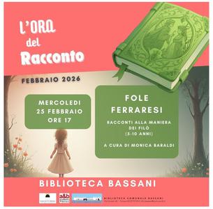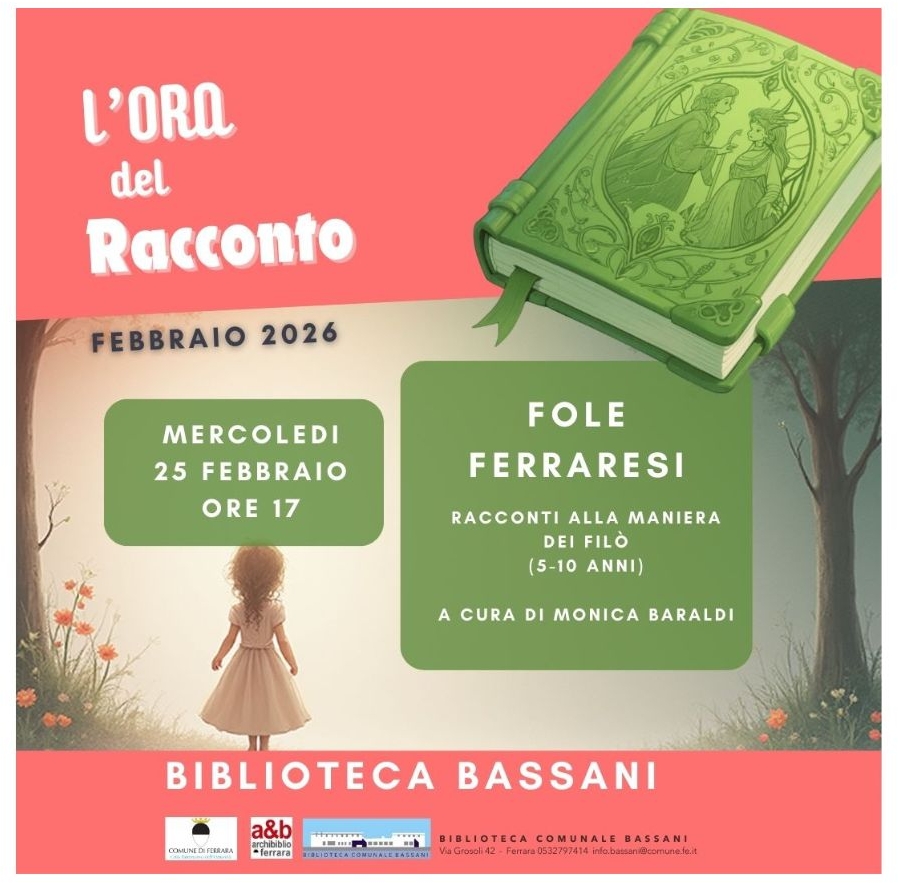 L'appuntamento, per bambine e bambini dai 5 ai 10 anni, è per mercoledì 25 febbraio 2026 alle 17:00 alla biblioteca comunale Bassani (via Grosoli 42, Barco, Ferrara). Protagonista sarà Monica Baraldi con i racconti da lei raccolti grazie alla memoria orale dei nonni, in particolare del "nonno Vigo", custode di antiche storie. I piccoli partecipanti ascolteranno racconti narrati alla vecchia maniera dei filò, in un'atmosfera calda e avvolgente ispirata al focolare, come nelle serate di un tempo, tra stalle, cortili e saggezza popolare.