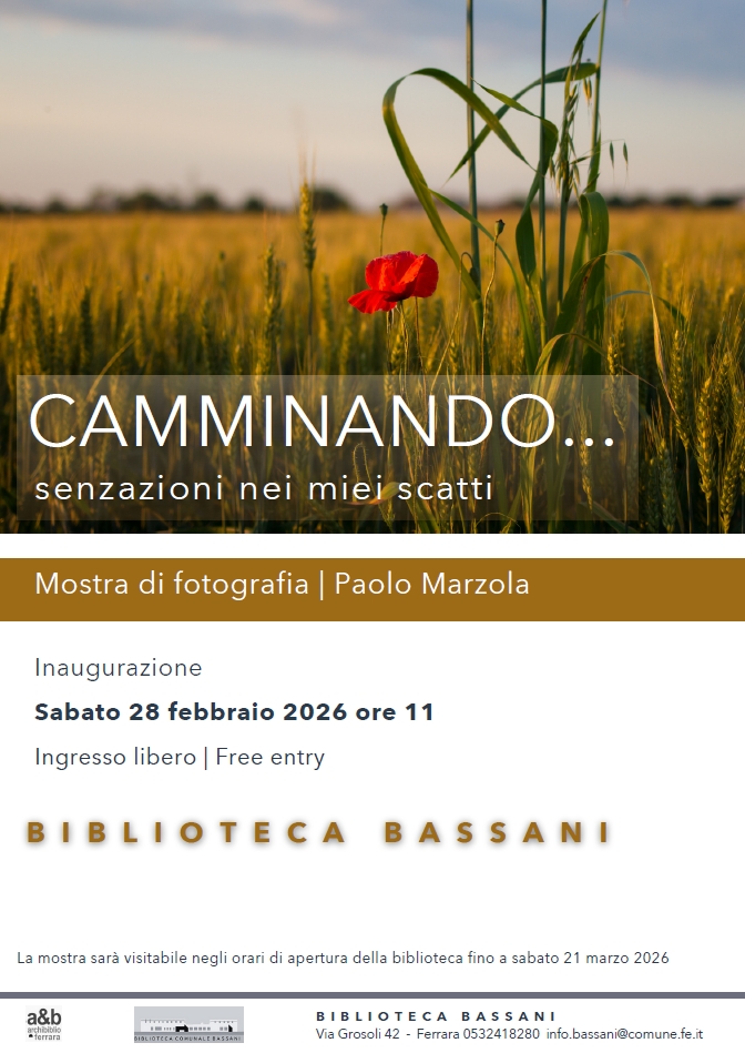 Ritraggono luci, colori e prospettive catturate tra le vie della città e a passeggio nella natura le fotografie di Paolo Marzola protagoniste della mostra dal titolo “Camminando…Sensazioni nei miei scatti” che sabato 28 febbraio 2026 alle 11:00 sarà inaugurata alla biblioteca comunale Bassani (via Grosoli 42, Barco, Ferrara).