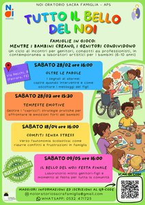 4. Sabato 09 maggio h. 16:00: "Il Bello Del Noi: Festa Finale" - Laboratorio misto genitori-figli e momento di festa per tutta la comunità.