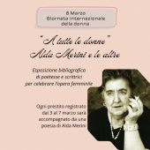 In occasione della "Giornata Internazionale dei diritti della donna", la biblioteca comunale Tebaldi (via Ferrariola 12, zona San Giorgio, Ferrara) propone una mostra bibliografica dedicata all'opera poetica di Alda Merini e di altre autrici contemporanee.