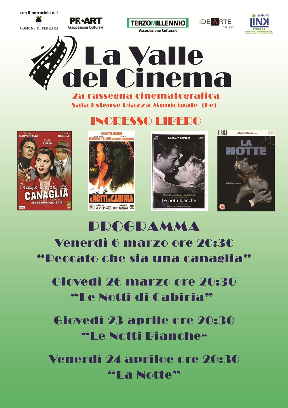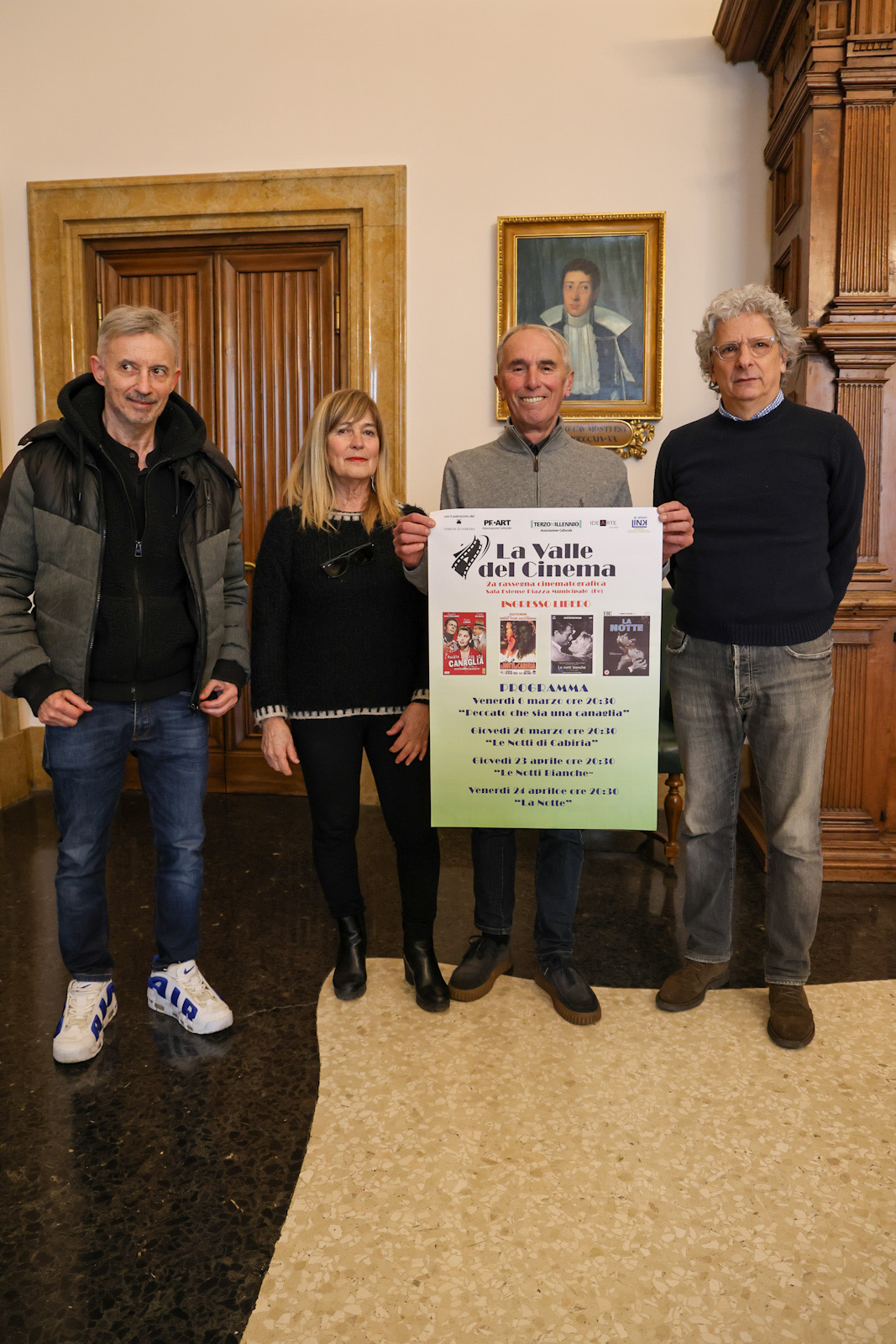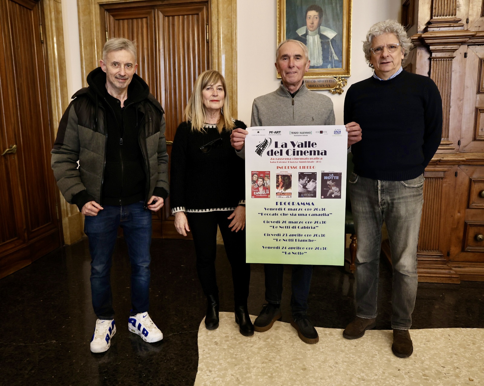 Seconda edizione della rassegna cinematografica "La valle del Cinema" in programma da venerdì 6 marzo a venerdì 24 aprile 2026 nella Sala Estense (piazza Municipio 14, Ferrara) a cura dell'associazione culturale Ferrara Pro Art Aps e dell'associazione culturale Terzo Millennio Aps in collaborazione con azienda Link Impianti. La manifestazione dedicata ai film girati nel dopoguerra - tra gli anni '50 e '60 - è stata presentata lunedì 2 marzo 2026 nella sala dell'Arengo della residenza municipale.