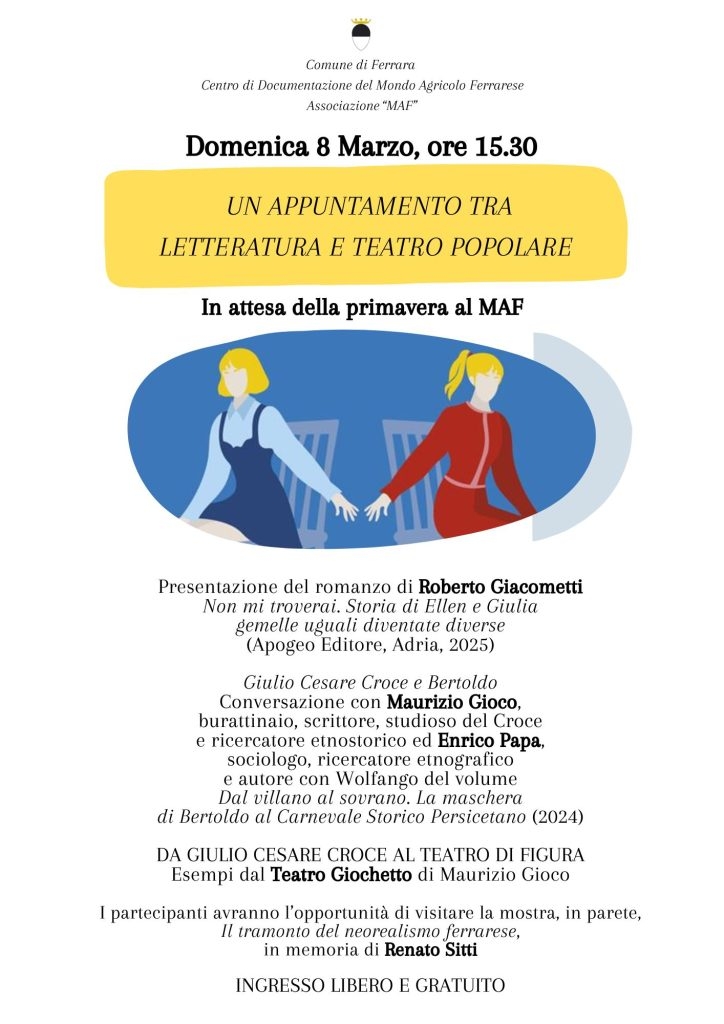 Domenica 8 marzo 2026, dalle 15:30, il Museo del Mondo Agricolo Ferrarese di San Bartolomeo in Bosco (via Imperiale 263 - Ferrara) propone un appuntamento che unisce la letteratura e il teatro di figura.