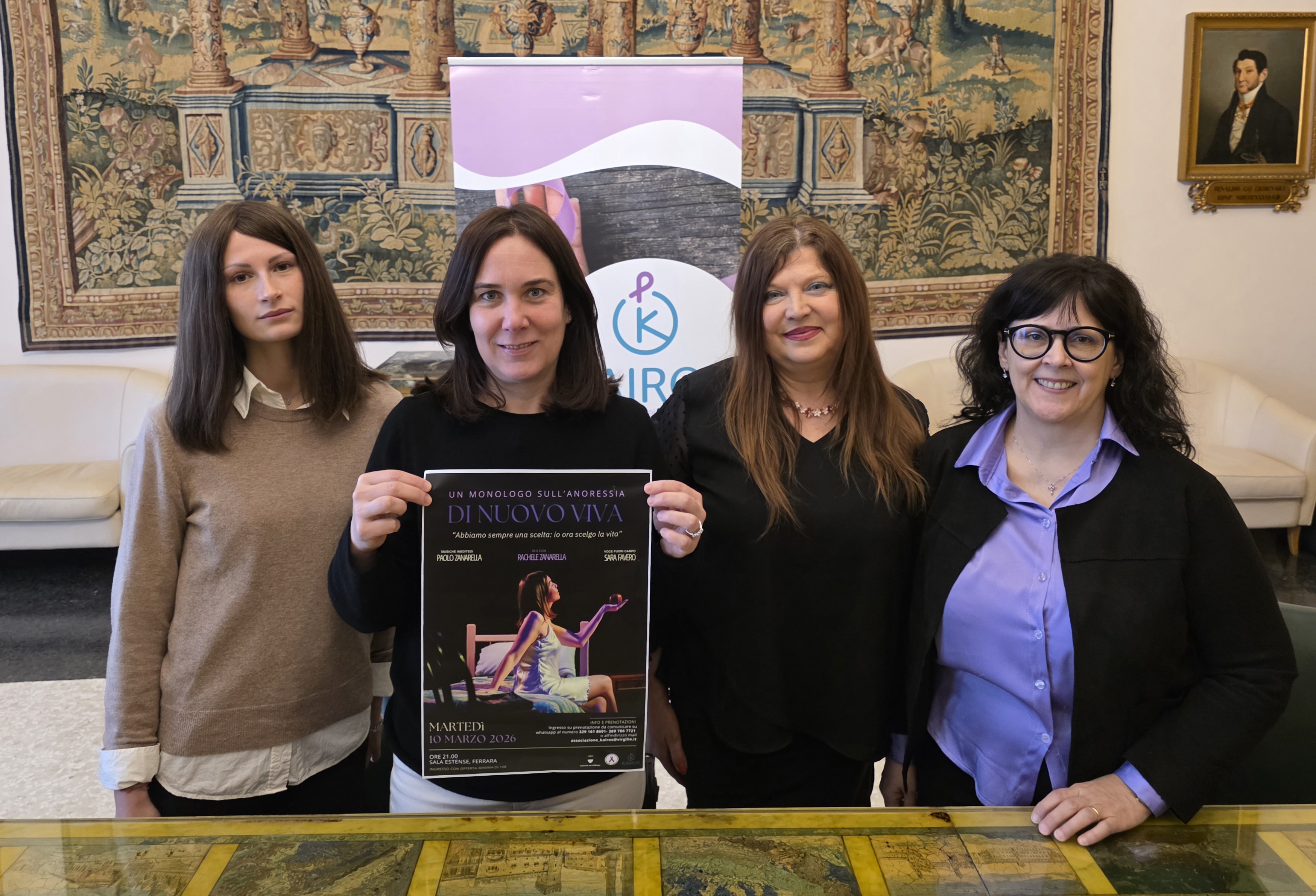 Nella foto, da sinistra: Sofia Pellegrinelli (tirocinante psicologa); Assessore Cristina Coletti; Elisabetta Zerbini (presidente Associazione Kairos); Francesca Giovannini (centro Dca di Ausl Ferrara).