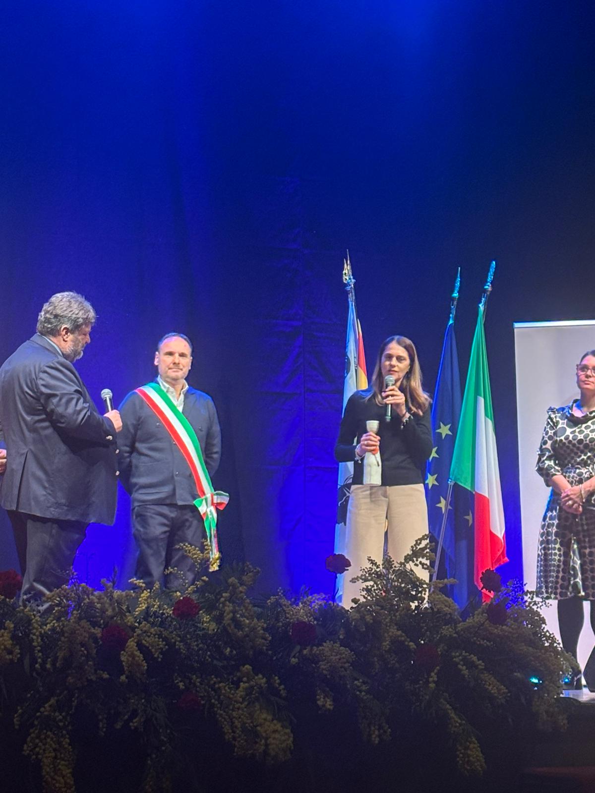 Durante la serata, all'assessore Fornasini è stato consegnato un riconoscimento che il Comune di Fertilia ha dedicato alle Città di Fondazione e alle Città Amiche di Fertilia (Tresigallo, Arborea, Trieste e Gorizia).