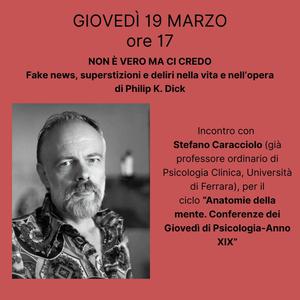Proporrà un'indagine su 'Fake news, superstizioni e deliri nella vita e nell'opera di Philip K. Dick' la nuova conferenza del ciclo 'Anatomie della mente' in programma giovedì 19 marzo 2026 alle 17:00 nella sala Agnelli della biblioteca Ariostea (via Scienze 17 Ferrara).
