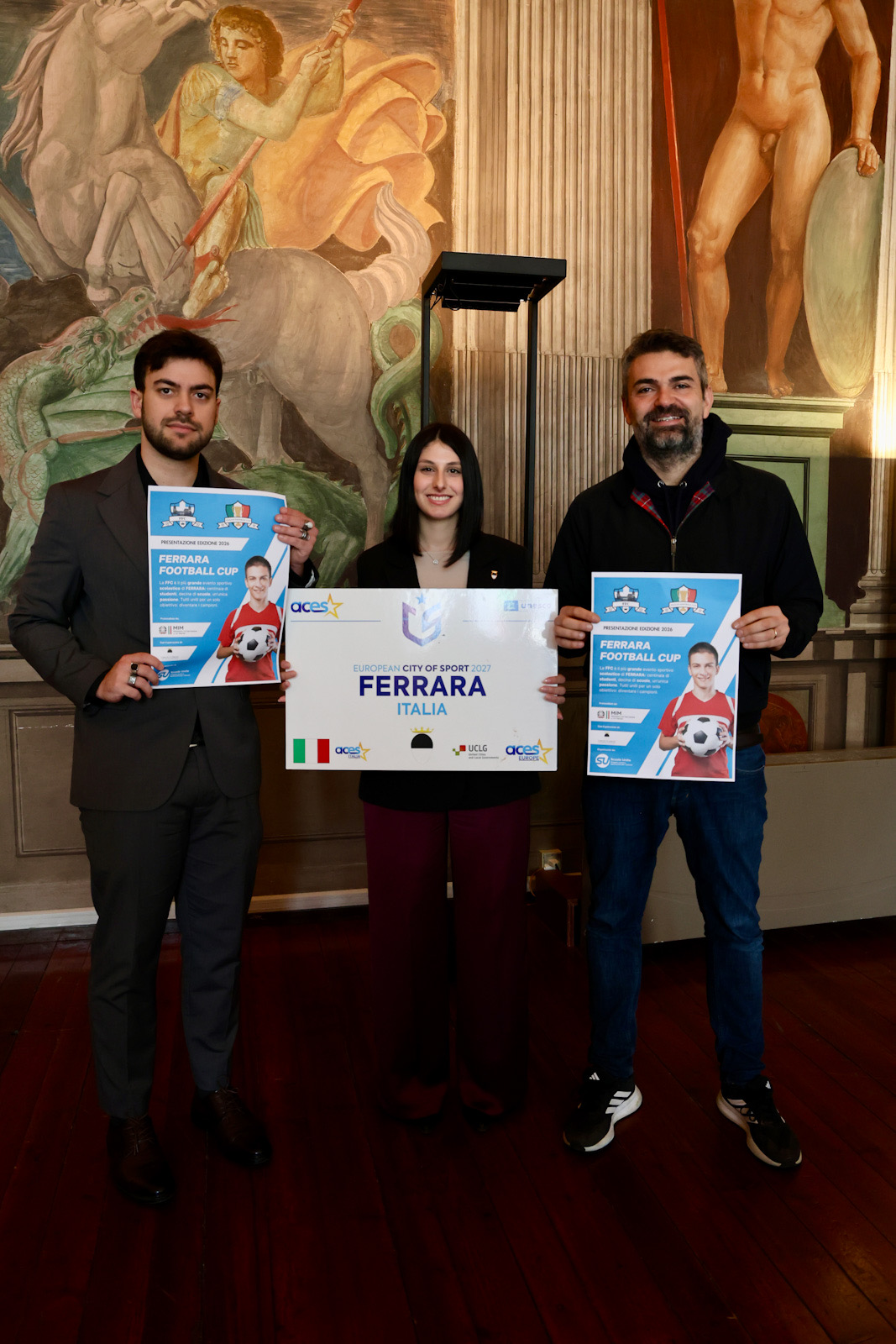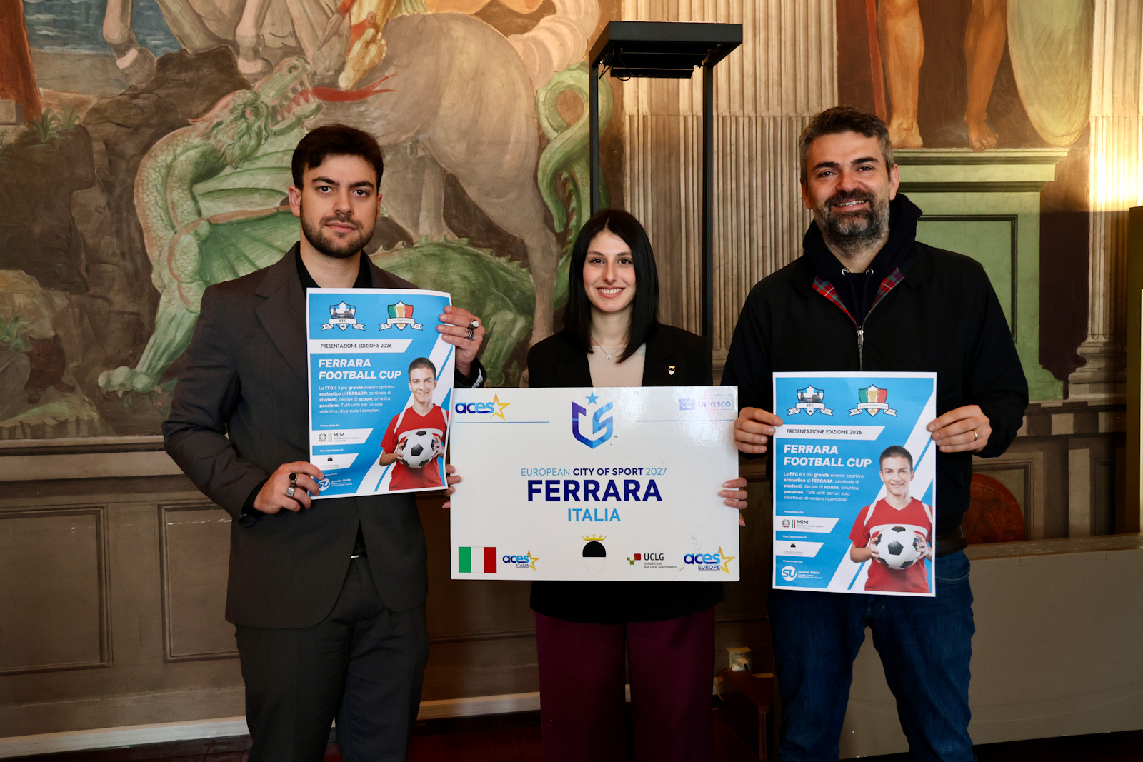 "Ferrara Football Cup", è il torneo di calcio a 11 che si diputerà tra gli istituti scolastici del territorio in programma per maggio 2026. L'iniziativa sportiva - che vede attualmente coinvolti 12 istituti scolastici ferraresi - è stata presentata giovedì 19 marzo 2026 nella sala dell'Arengo della residenza municipale di Ferrara.