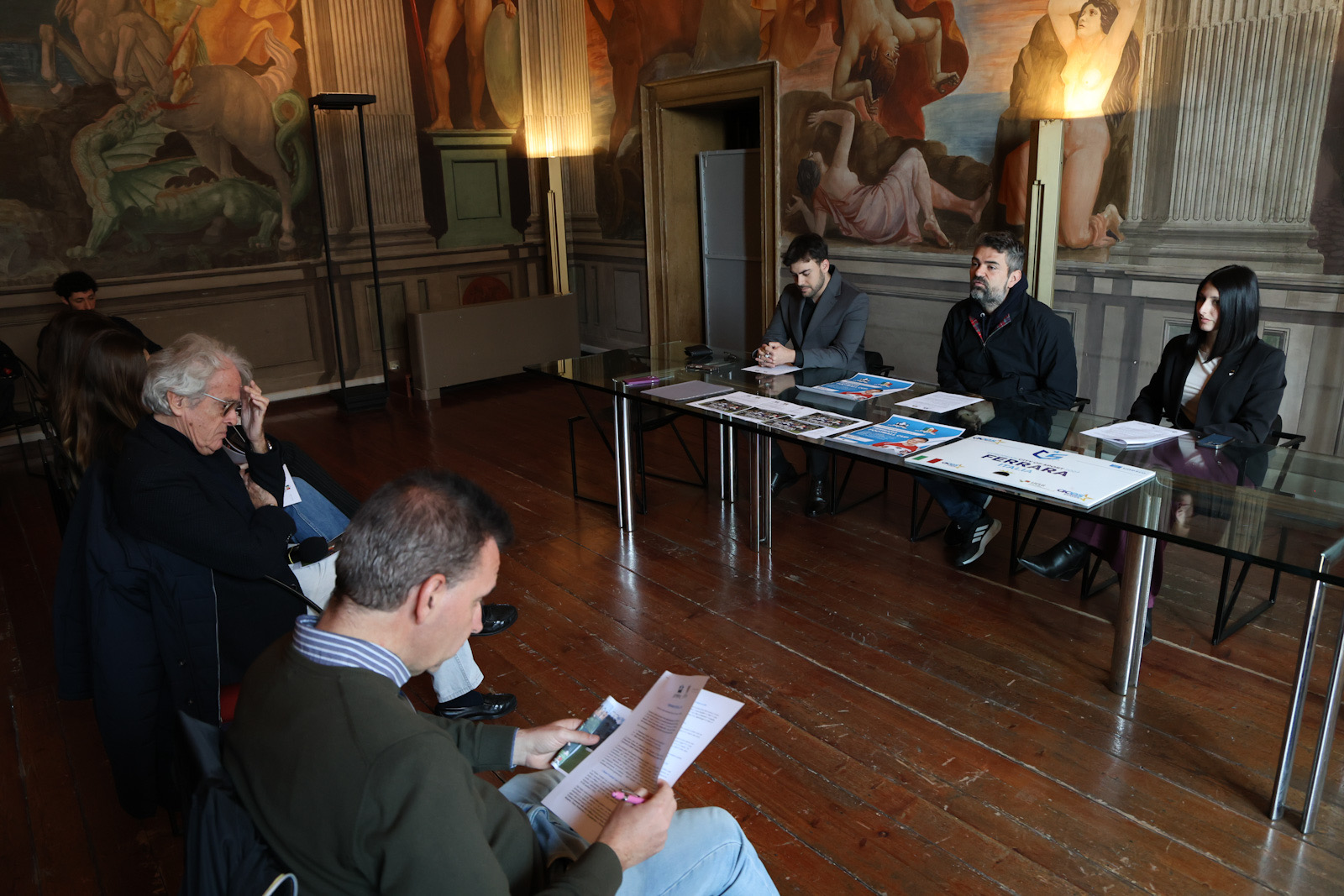 All'incontro con i giornalisti sono intervenuti l'assessore allo Sport del Comune di Ferrara Francesco Carità; il presidente e la vicepresidente dell'associazione Scuole Unite Samuele Pazzi ed Ester Leonardi.