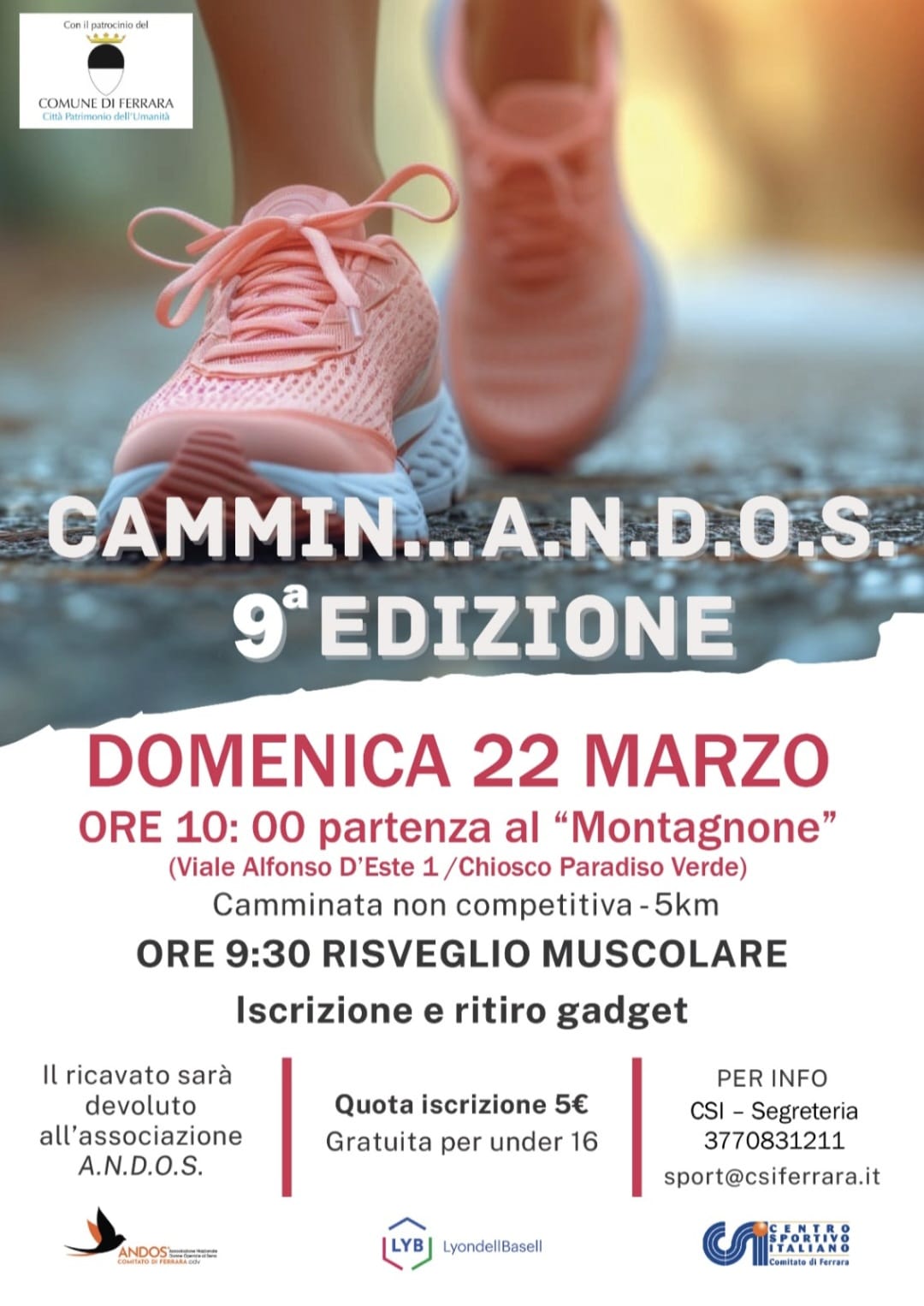 Location e percorso nuovi, ma con immutato spirito solidale. Anche quest'anno Csi Ferrara, Andos e LyondellBasell, visto i successi delle scorse edizioni, hanno deciso di organizzare CamminAndos, camminata benefica non competitiva giunta alla sua 9a edizione.