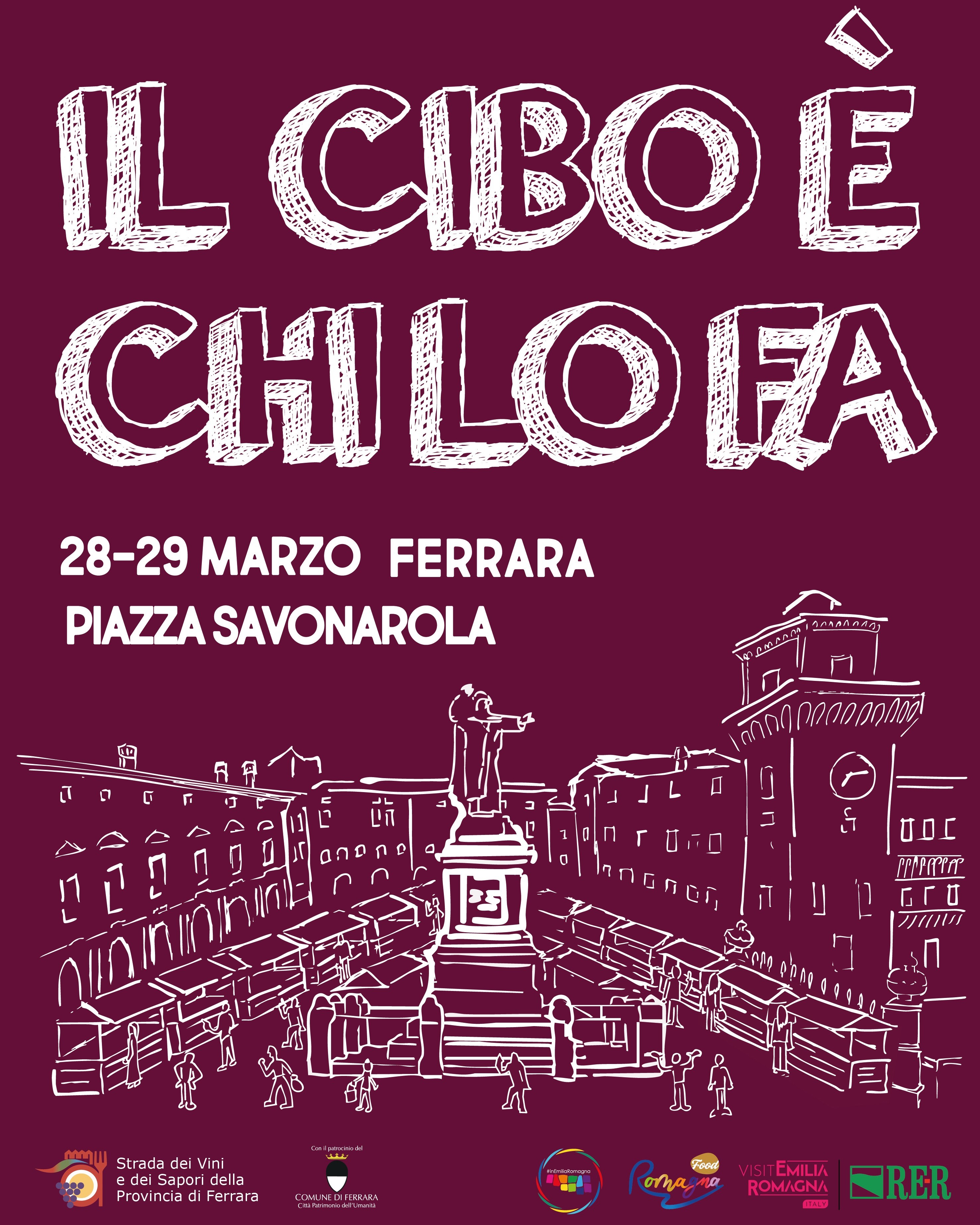 Per info sulla manifestazione : https://www.ilciboechilofa.it/ e www.stradaviniesaporiferrara.it, FB Page Strada dei Vini e dei Sapori della Provincia di Ferrara, FB Page : Mercato contadino di Ferrara, Instagram StradaViniSapori_Ferrara