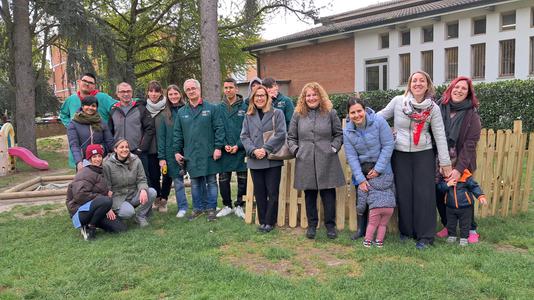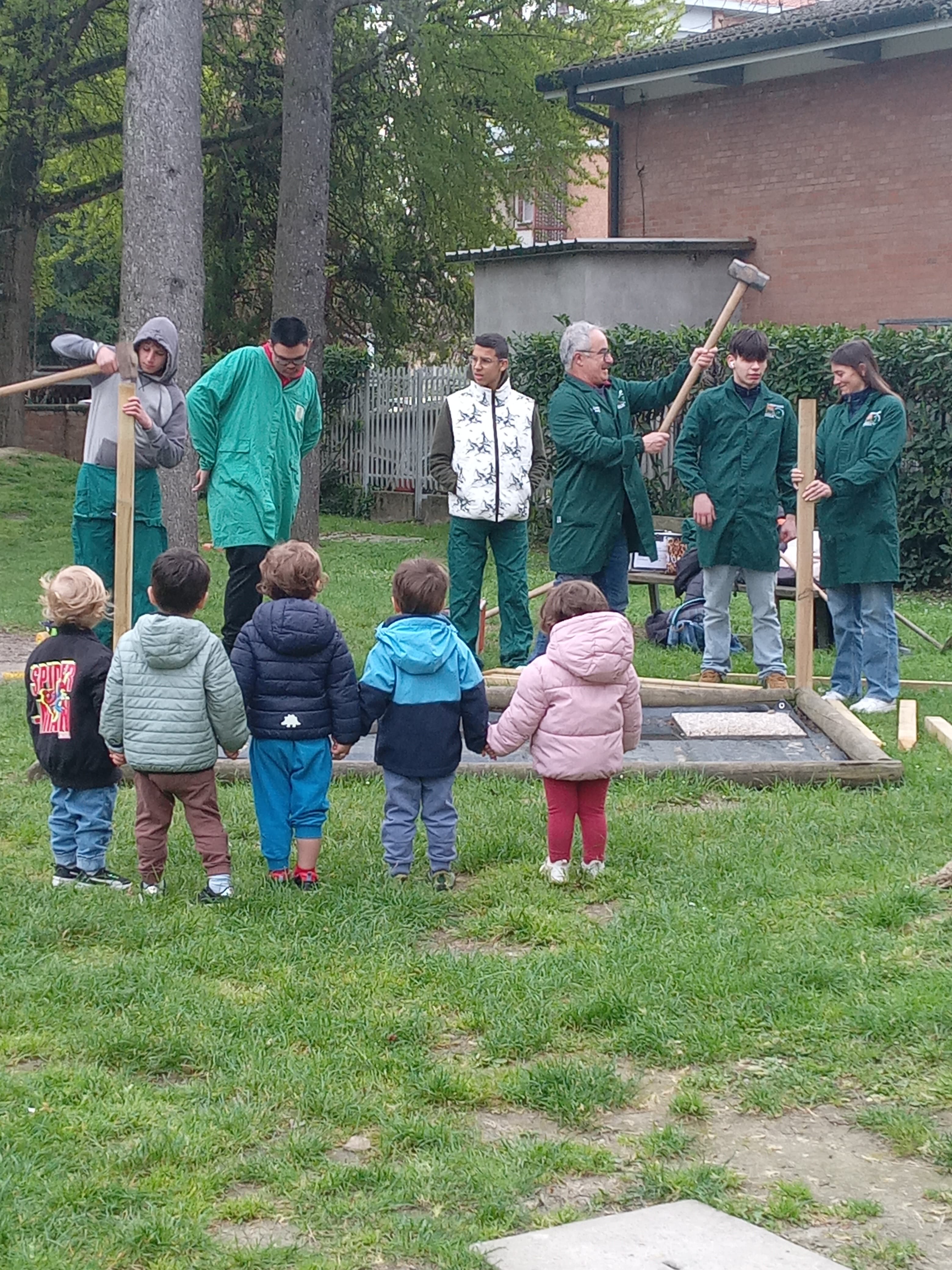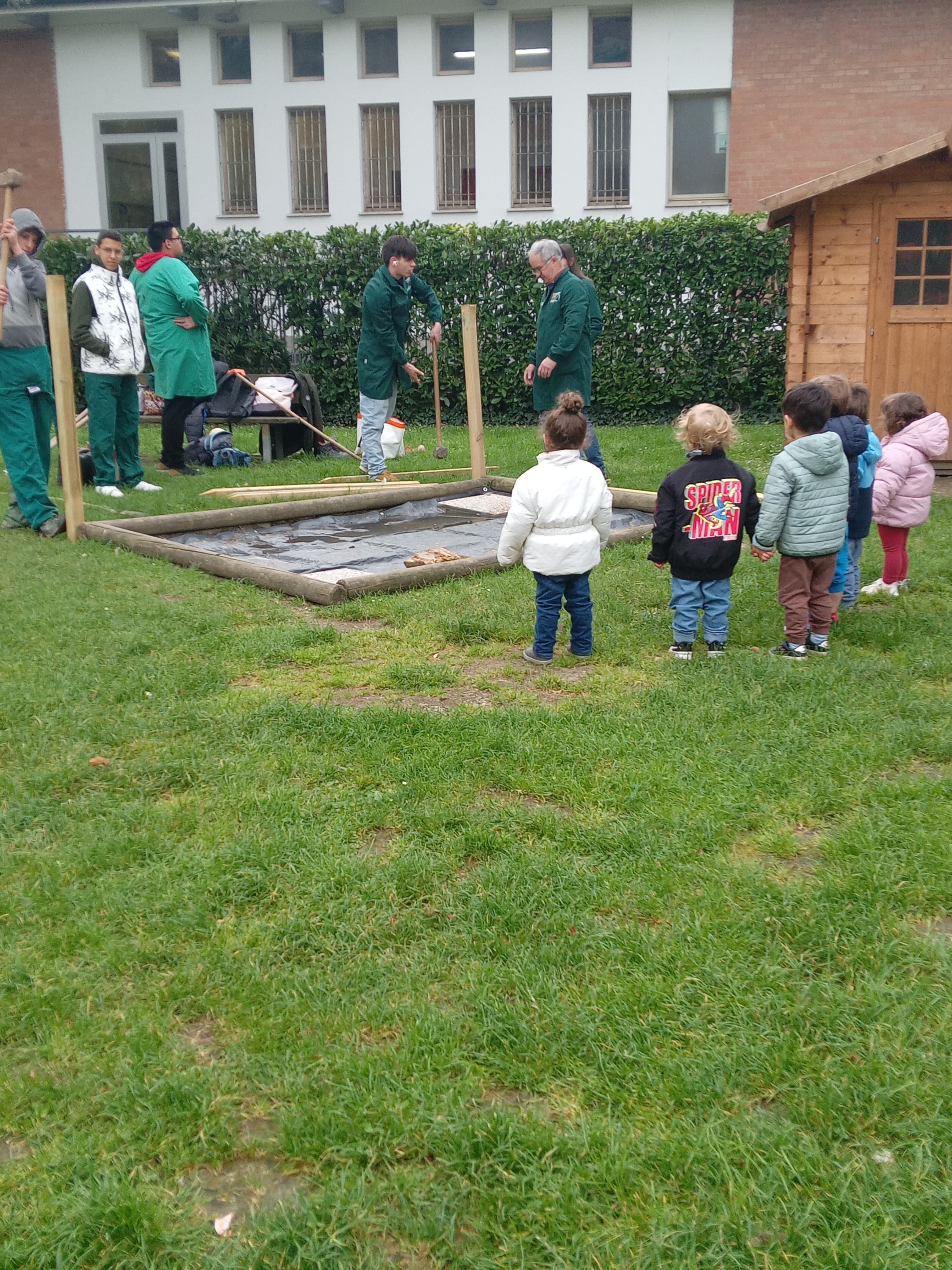 disposizione materiali utili alla realizzazione dell'area verde. Un intervento che consente anche la riqualificazione di una parte del giardino, restituendola a una funzione educativa e condivisa.