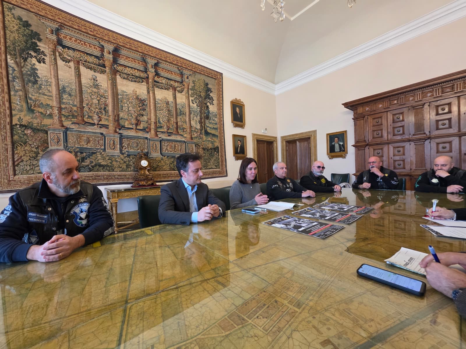 Nella foto, al centro l'assessore Coletti e il sindaco Saletti insieme ai rappresentanti dei 5 club motociclistici promotori dell'iniziativa