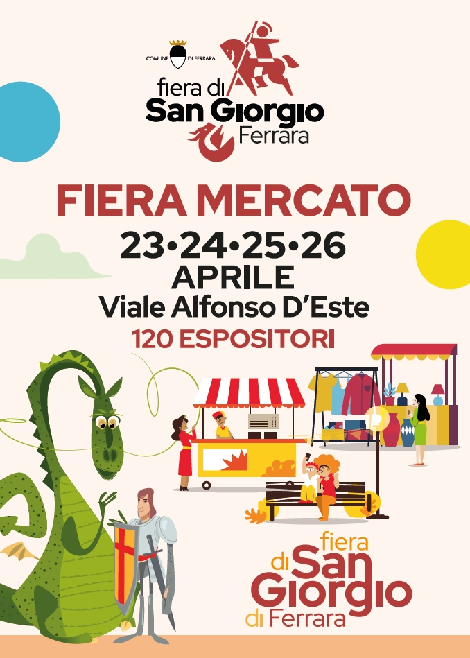 La fiera mercato, con bancarelle dedicate a diverse categorie merceologiche, resterà invece collocata in viale Alfonso I d'Este e sarà dal 23 al 26 aprile con 120 espositori presenti.