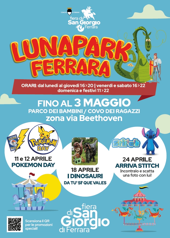 L'area luna park sarà aperta dal lunedì al giovedì dalle 16:00 alle 20:00, il venerdì e il sabato dalle 16:00 alle 22:00, la domenica e i festivi dalle 11:00 alle 22.00, fino al 3 maggio 2026.