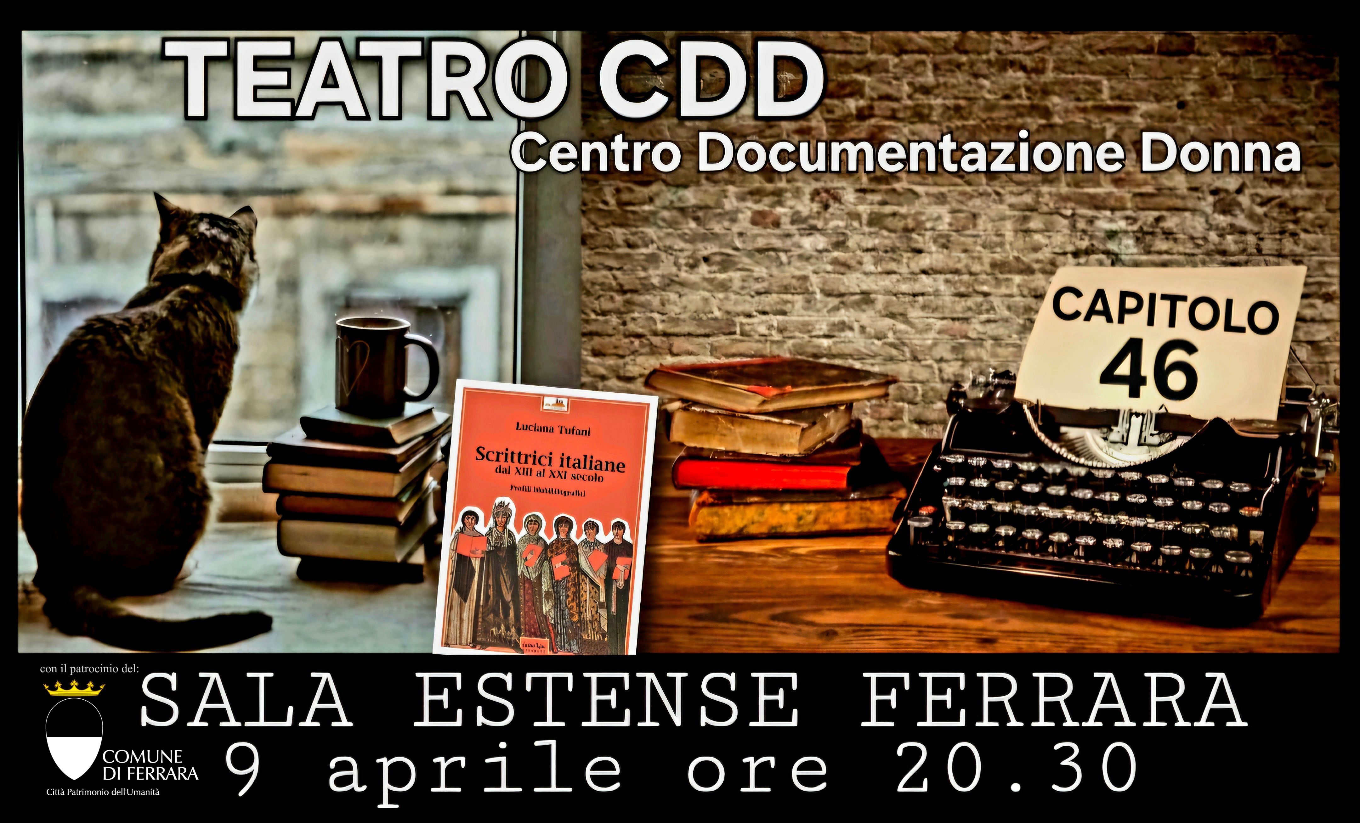 Un'importante pagina della storia culturale ferrarese prende vita a teatro con uno spettacolo ispirato alla vera storia del Centro Documentazione Donna di Ferrara, fondato da Luciana Tufani. L'appuntamento è per giovedì 9 aprile 2026 alle 20:30 alla Sala Estense (piazza Municipio 14, Ferrara) con la rappresentazione dal titolo "Capitolo 46", a cura del Teatro Cdd Ferrara, con la regia di Fabrizia Lotta e il patrocinio del Comune di Ferrara.
