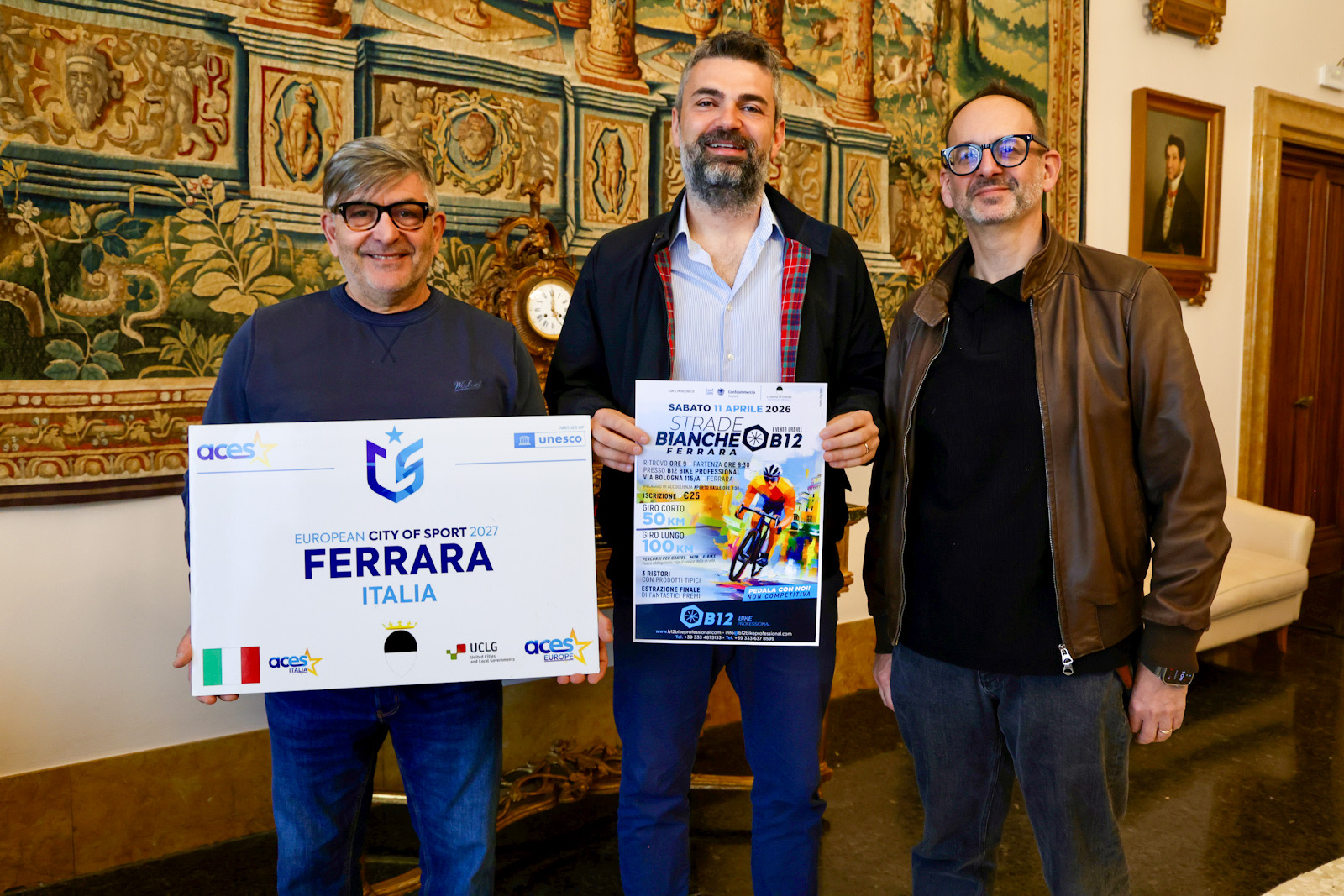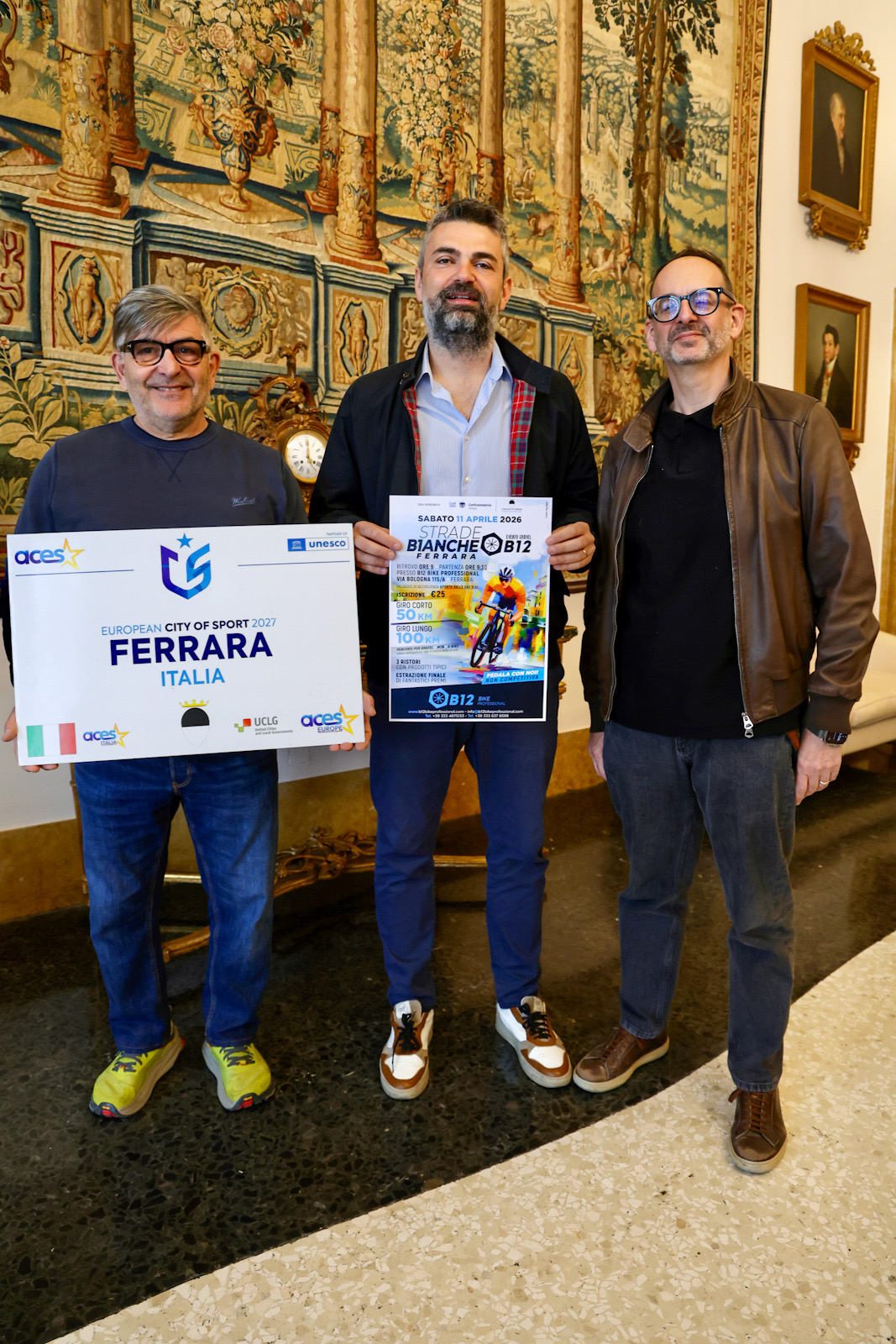 "Strade Bianche B12 Ferrara" è la manifestazione ciclistica per bici gravel e mtb in programma per sabato 11 aprile 2026 con partenza e arrivo a Ferrara. L'appuntamento è stato è presentato giovedì 9 aprile 2026 nella sala degli Arazzi della residenza municipale di Ferrara.