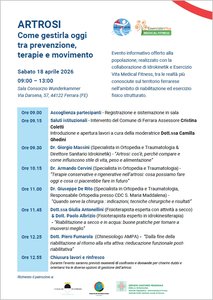 "In questi anni - conferma Michele Felisatti, Vice Presidente Esercizio Vita - ci stiamo sempre più spostando dal concetto di benessere all'health, quindi salute. In questo percorso rientrano gli eventi di approfondimento che da anni rivolgiamo alla cittadinanza e ai professionisti della salute. Anche con l'evento di sabato ci rivolgiamo a chi soffre di artrosi, ma anche a chi vuole prevenirla".