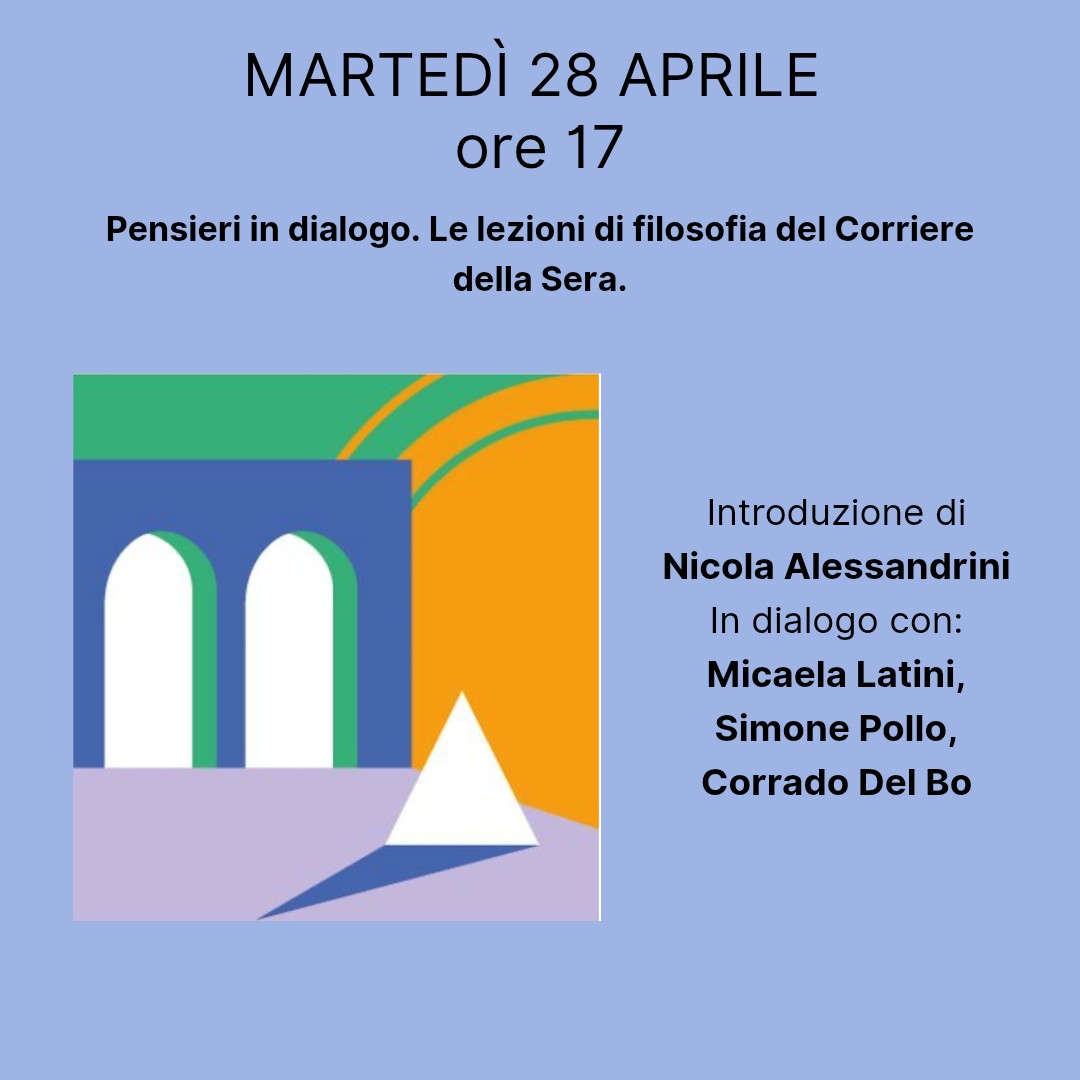 In occasione dell'uscita della collana "Lezioni di Filosofia - Teoria e pratica del pensiero", promossa da "Corriere della Sera", la sala Agnelli della biblioteca comunale Ariostea (via Scienze 17 Ferrara) ospiterà, martedì 28 aprile 2026 alle 17:00, un incontro aperto alla cittadinanza, con la partecipazione di alcuni autrici e autori.