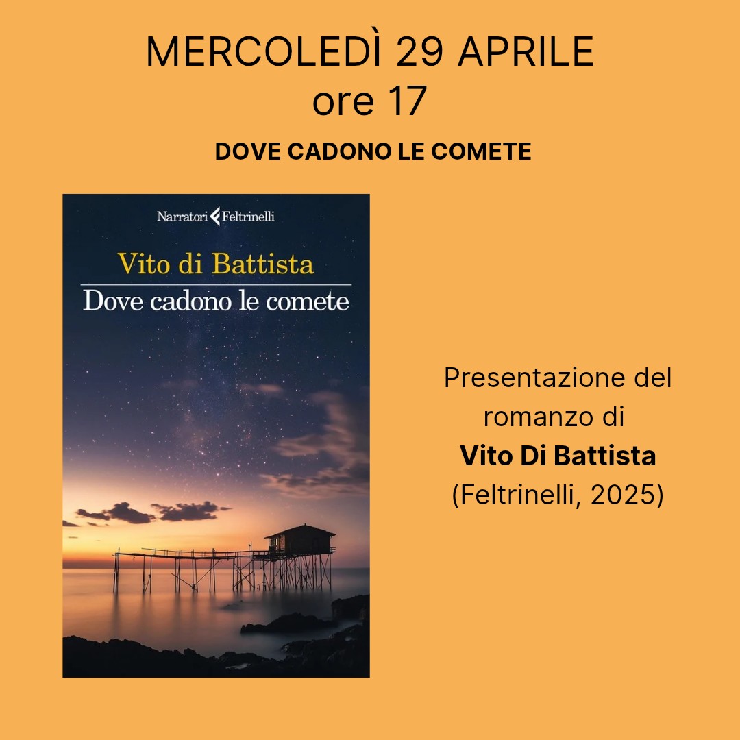 E' ambientato in un piccolo borgo abruzzese negli anni della Seconda guerra mondiale il romanzo di Vito Di Battista dal titolo "Dove cadono le comete" (Feltrinelli, 2025) che mercoledì 29 aprile 2026 alle 17:00 sarà presentato nella sala Agnelli della biblioteca comunale Ariostea (via Scienze 17 Ferrara).